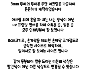| 배송안내 | 주문 제작 상품의 경우 주문 완료일 기준 7일 이내 제작된 후 발송 됩니다., 배송 기간은 택배사의 사정에 따라 평균2~3일 정도 소요됩니다., 주문 제작 상품이 아닌 경우 주문 완료일 기준 1일 이내 발송됩니다., 당 사의 사정에 따라 평일 중 목, 금요일 에는 배송이 지연될 수 있습니다. |